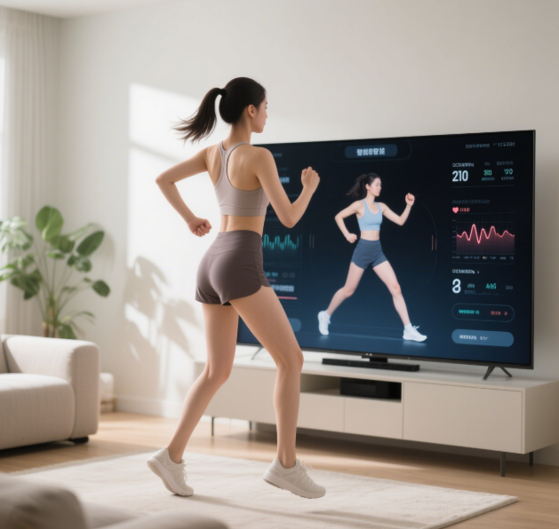 通过智能电视或可穿戴设备,用户可参与AI健身课程,结合游戏化设计提升运动趣味性。