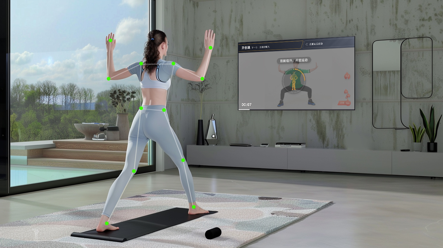 AI技术正推动智慧屏从“显示终端”向“健康管家”升级。通过AI健康服务应用,智慧屏可整合AI技术,实现健康数据实时分析与个性化指导。例如,运动场景中,AI可实时纠正用户动作,降低损伤风险;健康评估则通过多维数据分析,提供定制化方案。