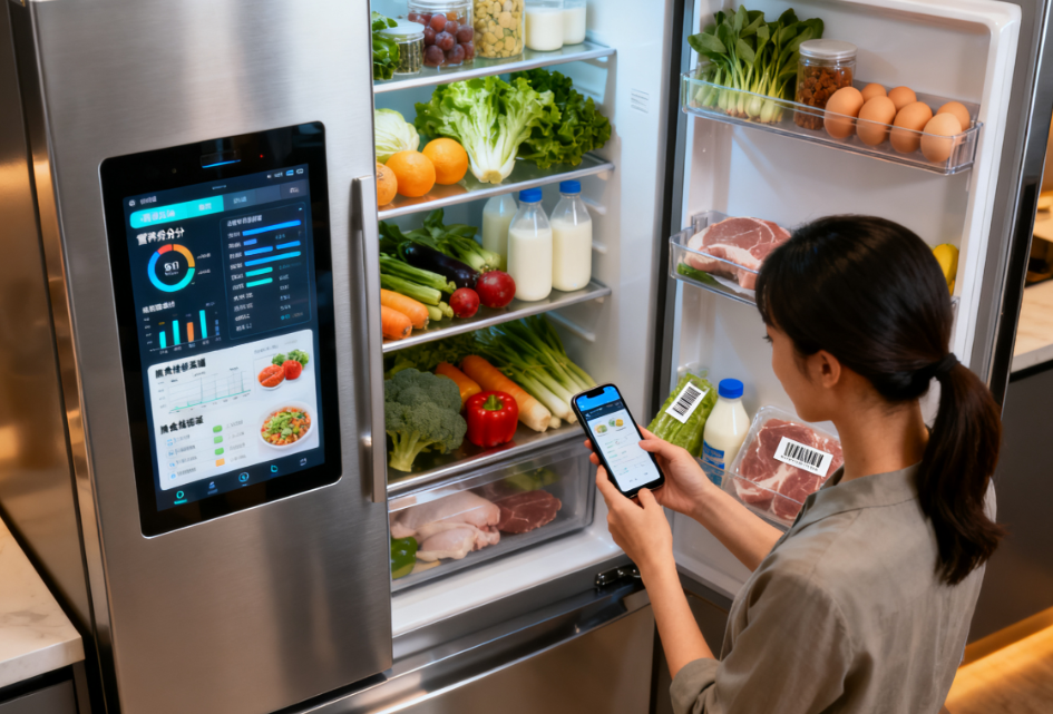 首先,AI视觉识别与智能库存管理解决食材透明化难题。摄像头与图像识别算法自动记录食材种类、数量及保质期,同步至手机APP,用户可随时查看库存,避免重复采购或遗漏。其次,新鲜度动态监测与预警通过传感器感知存储环境,结合算法预测变质风险,提醒优先食用临期食材,减少浪费并保障安全。更重要的是,AI食材管理为健康膳食推荐提供数据基础。基于实时库存与用户健康档,自动匹配营养需求推荐菜谱。