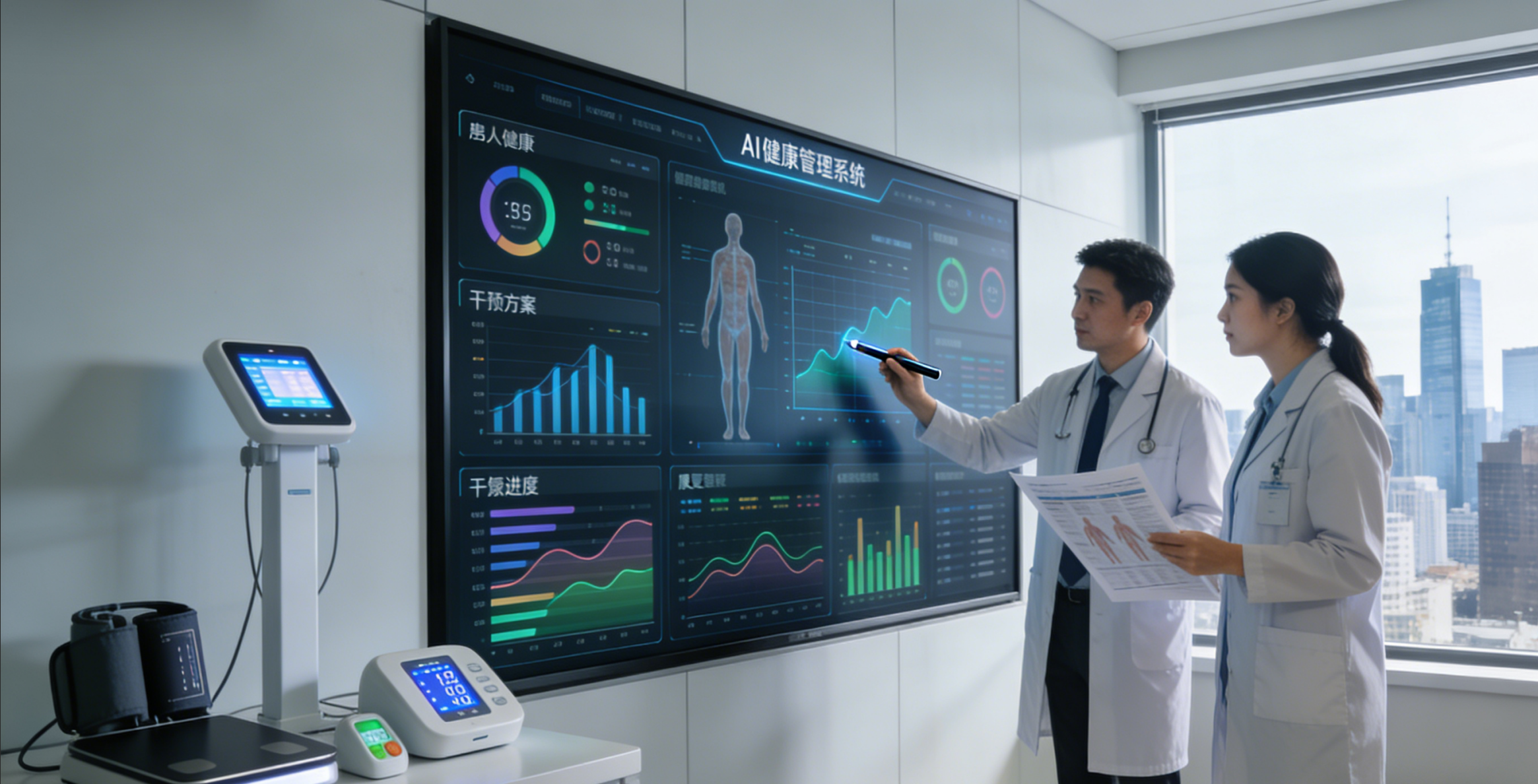 健康干预阶段:针对亚健康人群提供饮食、运动指导,针对慢病人群提供个性化管理方案,针对职业病人群提供实时监测与紧急救助服务;