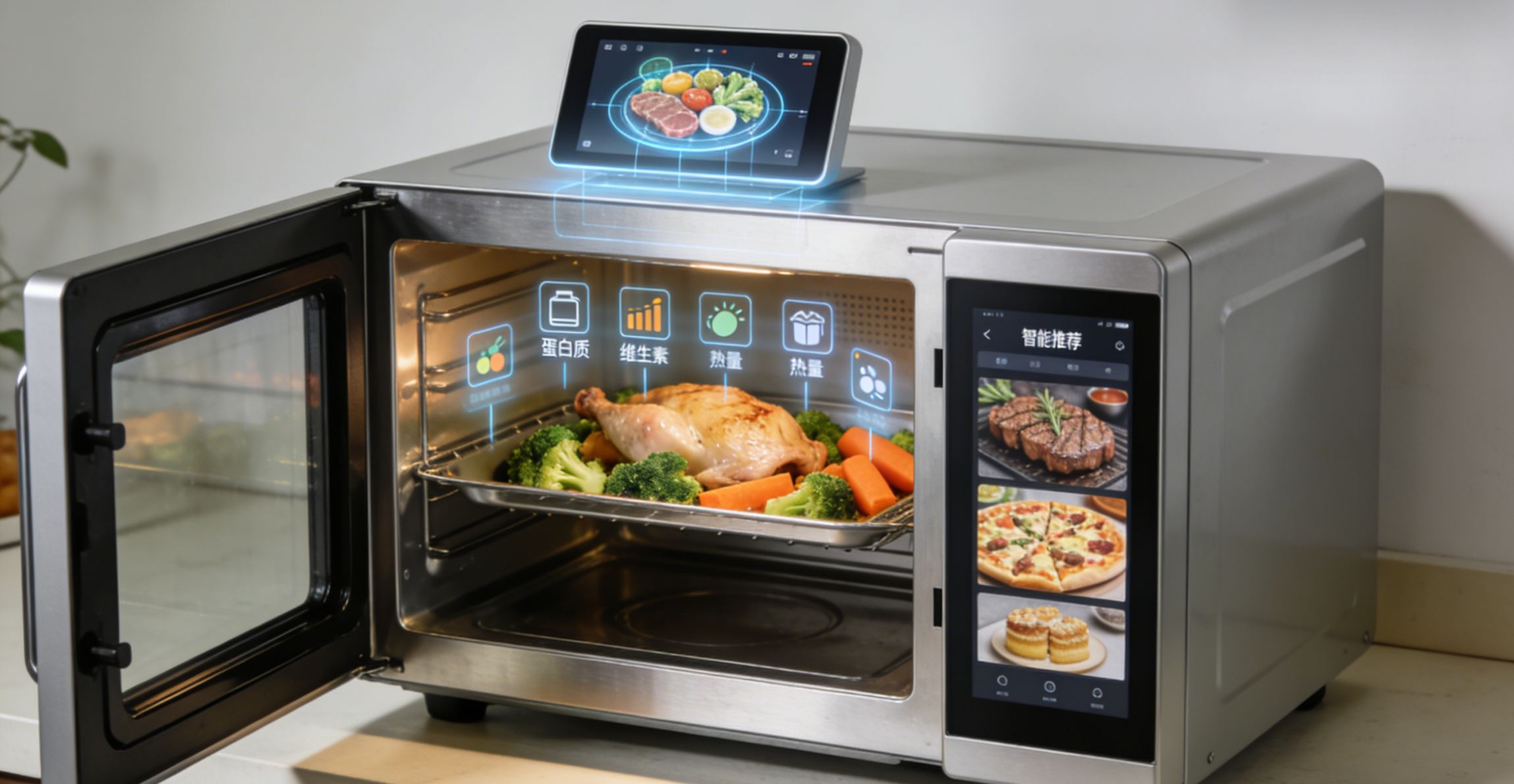 全链路健康管理:智能烤箱可与冰箱、体脂秤、健康手环等设备数据互通。当烤箱识别到食材后,不仅能根据食材本身特性烹饪,还能结合用户近期的体重变化、睡眠质量等健康数据,微调菜谱推荐,实现烹、食、体的闭环管理。