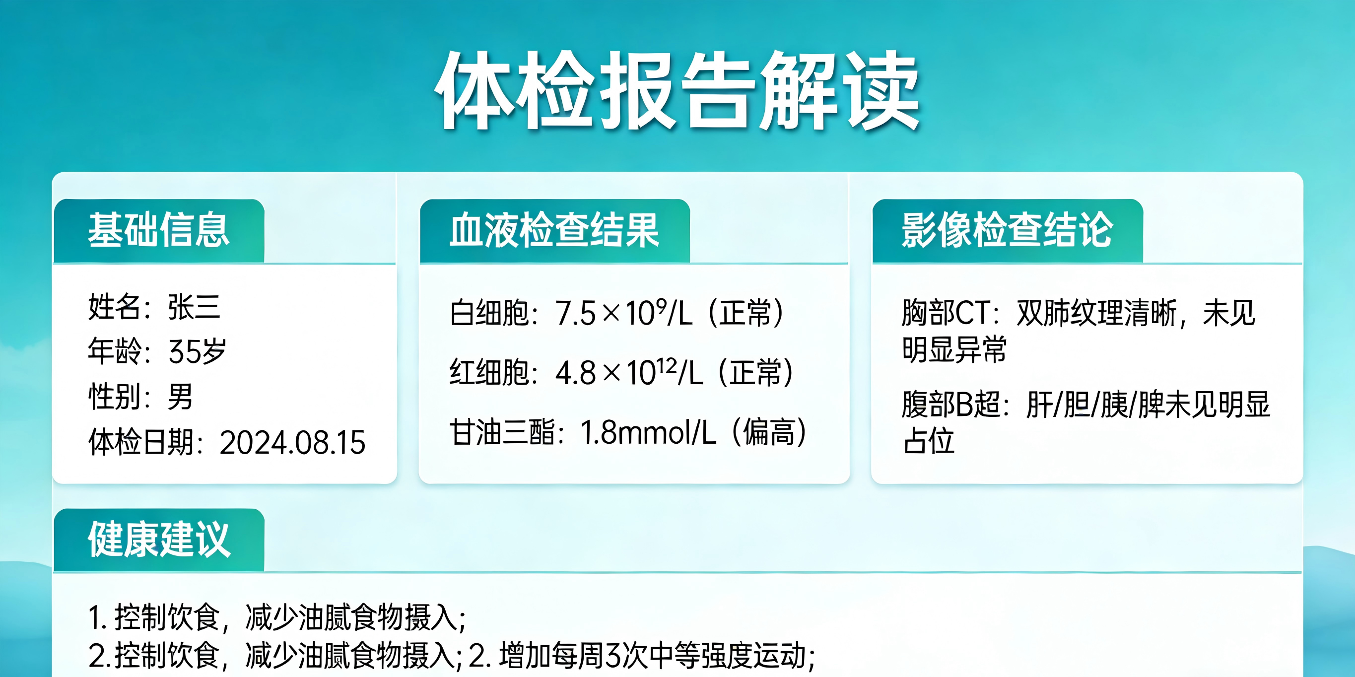 综上,AI解析体检报告技术的应用,不仅破解了传统解读模式的痛点,更推动体检报告解读从基础数据呈现向精准风险预警、个性化干预指导升级。未来,随着AI技术与医疗健康场景的深度融合,体检报告解读将更加精准、高效、便捷,为全民健康管理注入新的活力。