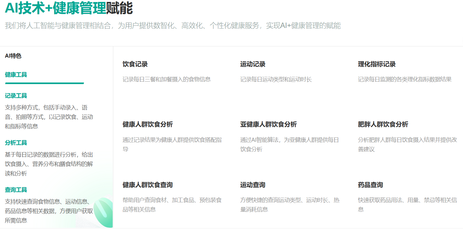 Health AI开放平台的技术内核是经过多年打磨的AI多模态大模型体系。平台整合了体征数据分析、体检报告解读、饮食营养评估、运动健康指导、慢病风险预测等多个专业AI模型。这些技术能力通过标准化API接口向合作伙伴开放,使合作伙伴能够以极低的成本快速获得专业级的AI健康能力,而无需自主投入巨大的技术研发资源。