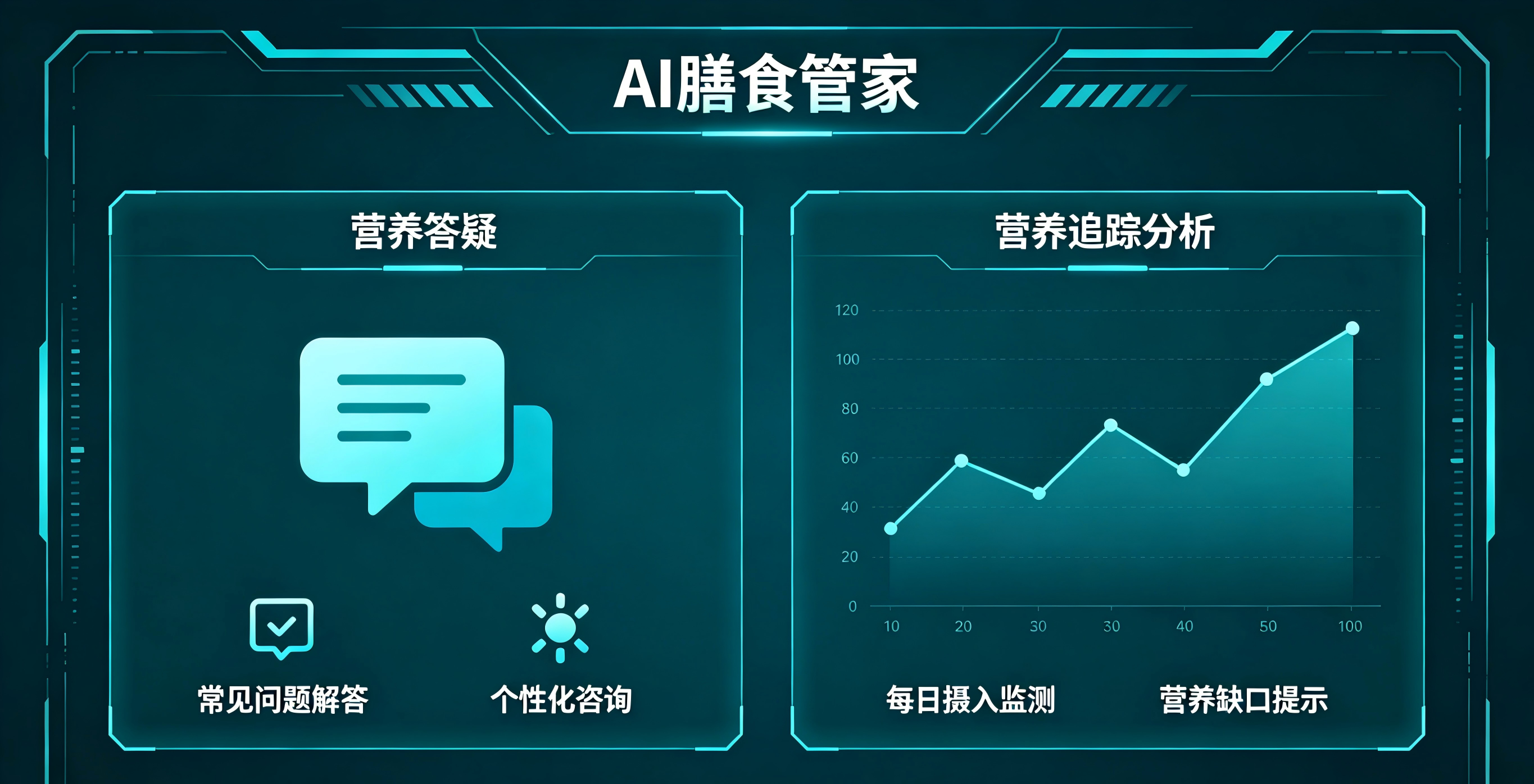 AI膳食管家的核心竞争力,在于其强大的长期营养追踪能力与精准的营养均衡分析功能。系统通过持续记录用户的饮食数据、健康指标与咨询历史,构建完整的个人营养档案,实现从"单次咨询"到"长期管理"的服务升级。